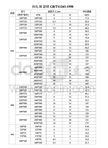 HW 是H型钢高度和翼缘宽度基本相等;主要用于钢筋砼框架结构柱中钢芯柱,也称劲性钢柱;在钢结构中主要用于柱